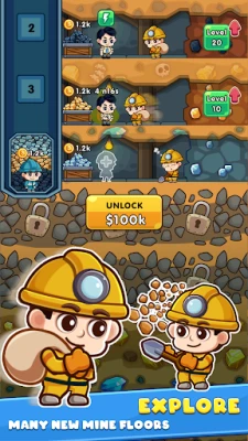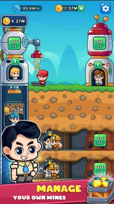 Use money and gold to buy more skilled workers and managers to help workers mine for gold faster and more efficiently. Idle managers help you optimize costs, upgrade infrastructure, and increase productivity for workers, helping you earn more money.