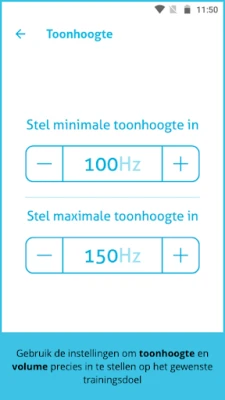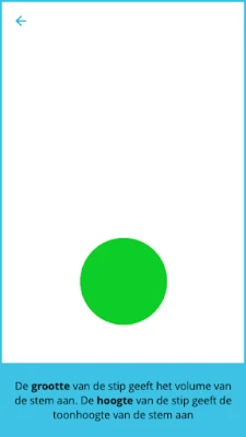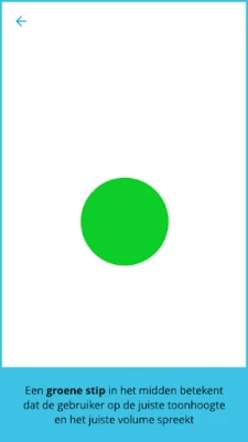 De Voice trainer geeft met één stip op het scherm continu visuele feedback over zowel de luidheid als de (spreek)toonhoogte van de spraak weer, waardoor direct te zien is welk aspect moet worden aangepast. U kunt de app gebruiken om makkelijker zelfstandig uw spreektechniek te oefenen, maar ook om tijdens conversatie te controleren of u goed spreekt. Het is de bedoeling dat u samen met uw logopedist de optimale luidheid en toonhoogte instelt.