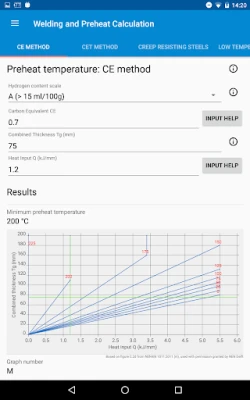 Use this app to calculate preheat temperature and other useful measures based on both the EN-1011-2 and AWS D1.1 standards. The included graphs and information snippets help you to gain insight in how the calculations work and how changes in input values influence the results.